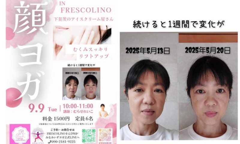 南伊豆町下賀茂バス停前のアイスクリーム屋さんにて、顔ヨガのレッスンを開催いたします